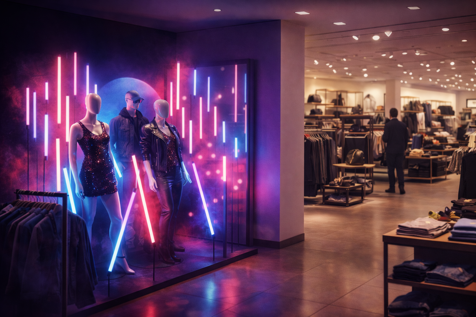 Vi arbetar med nytänk inom ljussättning, där ljus används som ett aktivt verktyg för att påverka hur människor rör sig, vad de dras till och hur en plats upplevs. Det handlar om att skapa dynamik, puls och tydliga blickfång – oavsett om miljön är tillfällig eller permanent.