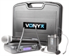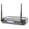 A wireless UHF microphone system with handheld transmitter and bodypack transmitter with headset microphone offering excellent sound quality and reliability. Bodypack and microphone operate on different frequencies and can thus be used at the same time. Ideal for vocalists, public speaking and aerobic instructors.